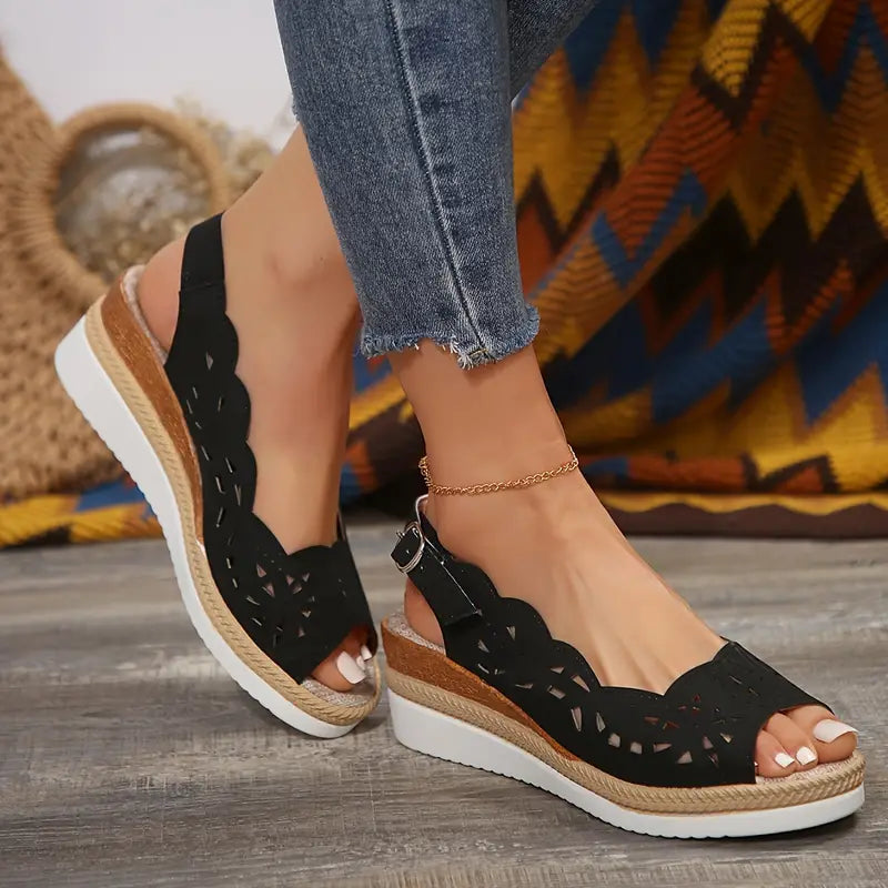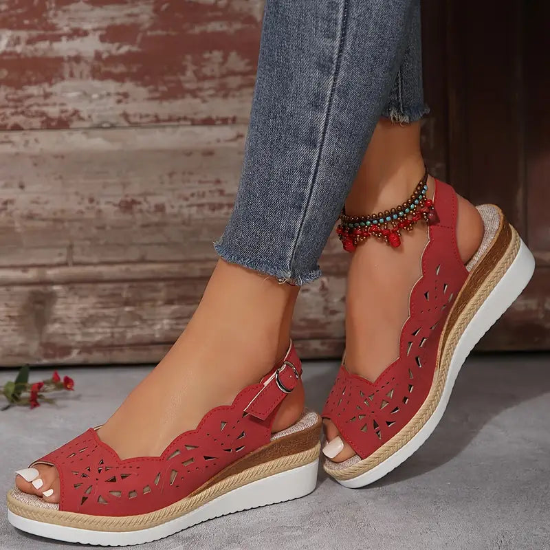 floral hollow sandals women s ankle buckle strap platform 1