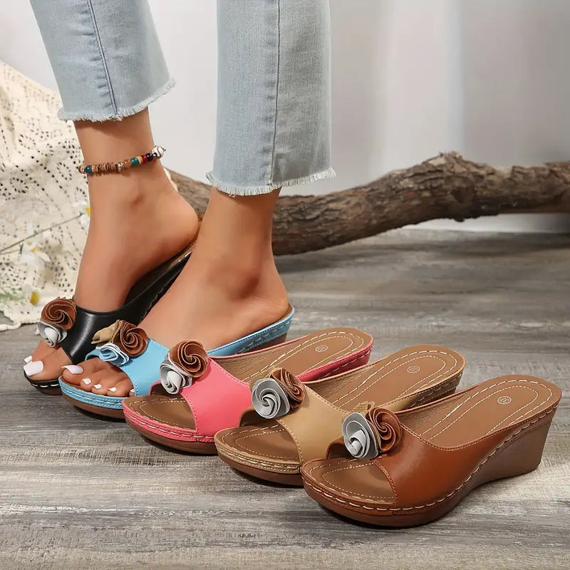 Sandalias De Plataforma Con Decoración Floral Para Mujer, Cómodas Y Con Suela Suave, Ideales Para Pasear Y Disfrutar De La Playa 2